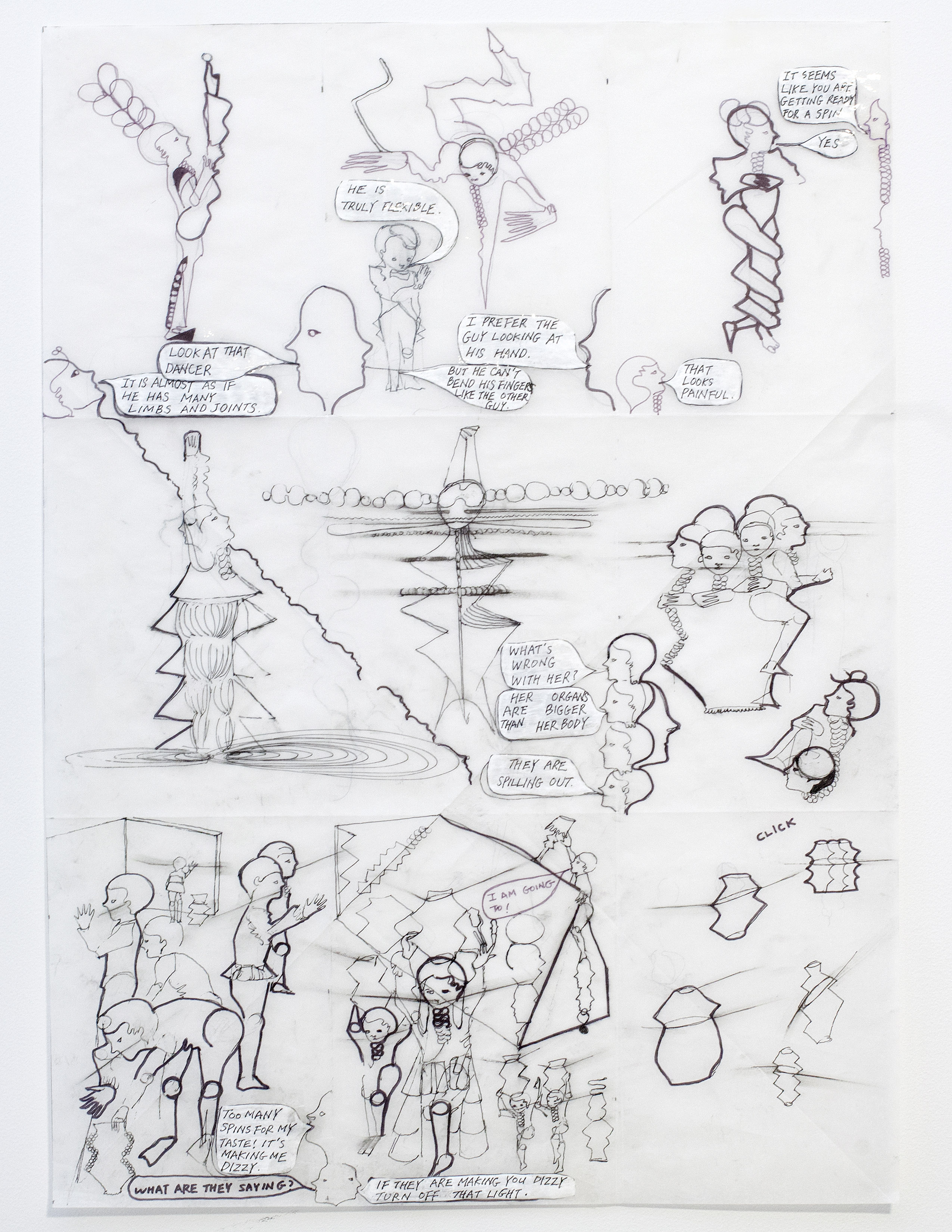 Ki-da Rilke 167, 2011, Parchment paper, paper, acetate sheets, pencil, poster paint on tracing paper, 48 x 41.5 cm; courtesy of Artist (SHKIM11DW013)