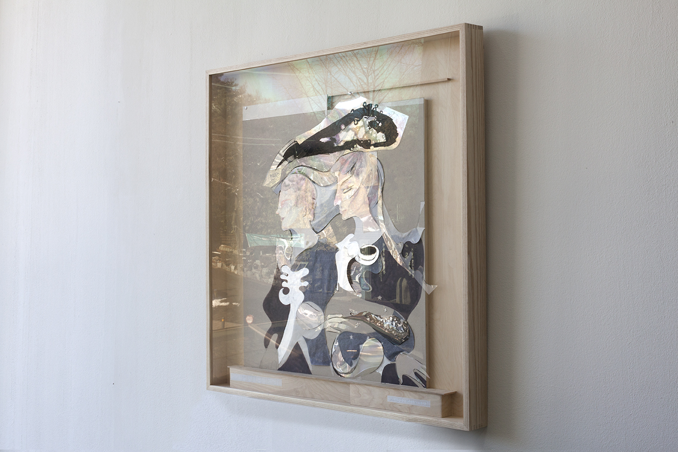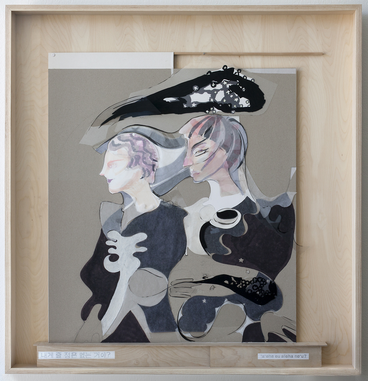 two women walk at night, discussing the history of the wind, 2020-21, Pencil, acrylic paint, water based poster paint, oil based poster paint, tracing paper, Bristol paper, mounting board, transparent film, aluminum tape, hinging tape, document repair tape, double sided tape, scotch tape, glue in custom wood frame, 114 x 119 x 9 cm; courtesy of Artist (SHKIM20DW003)