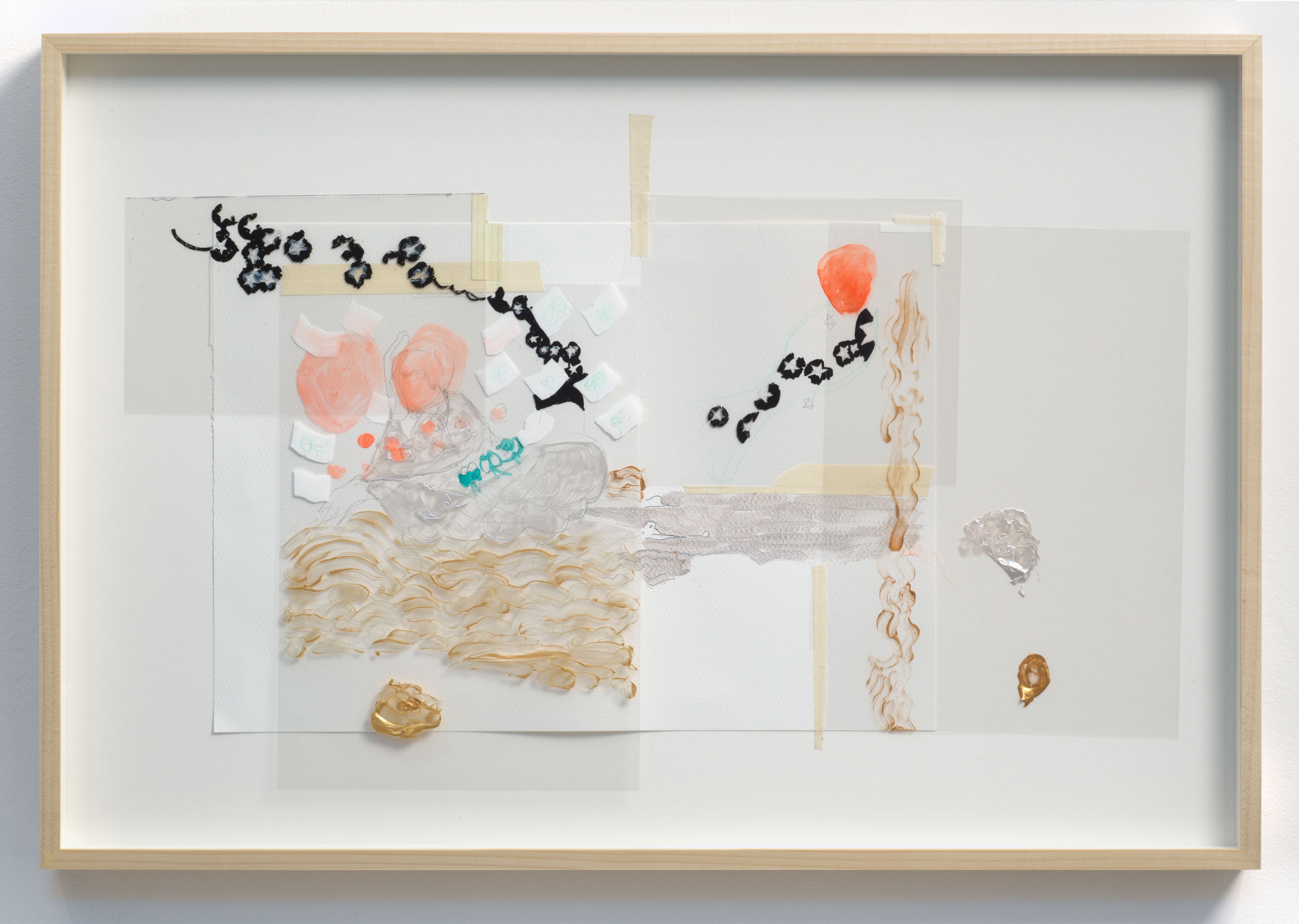 woman head by the water (suns and moons), 2016, Poster pen, pencil, acrylic, acetate, tape on paper, 40 x 62 cm paper, 48.5 x 70.5 x 5 cm frame; courtesy of Artist (SHKIM16DW005)